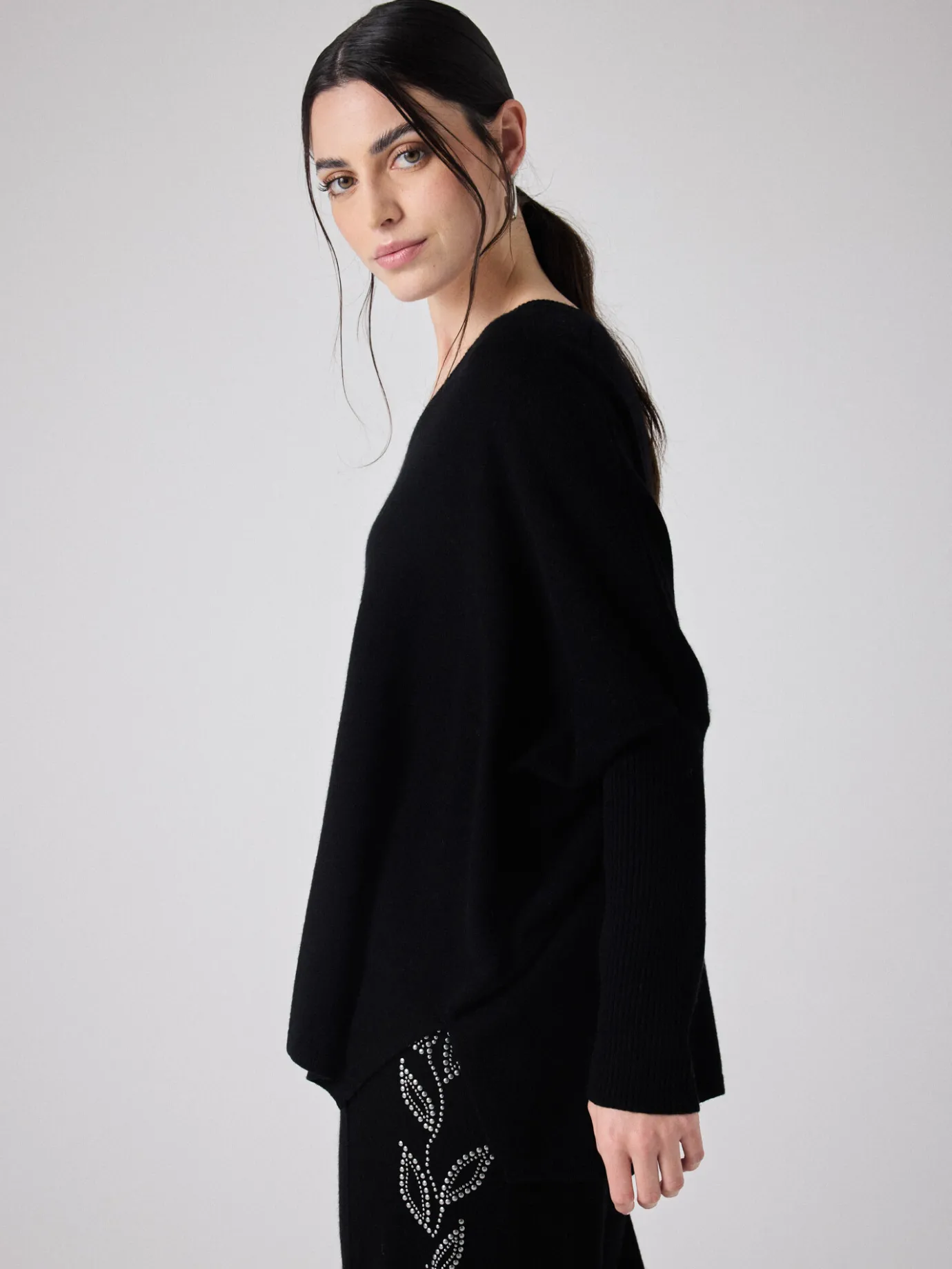 Pull pour femme, col V, manches longues