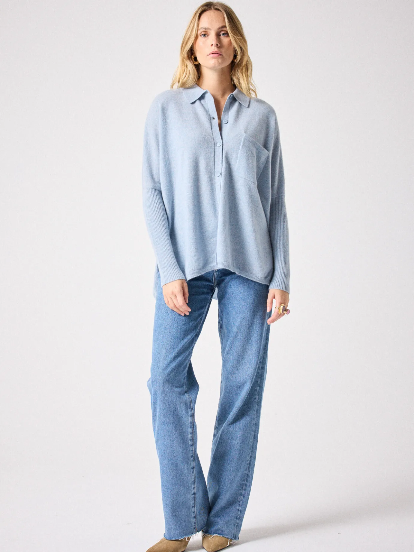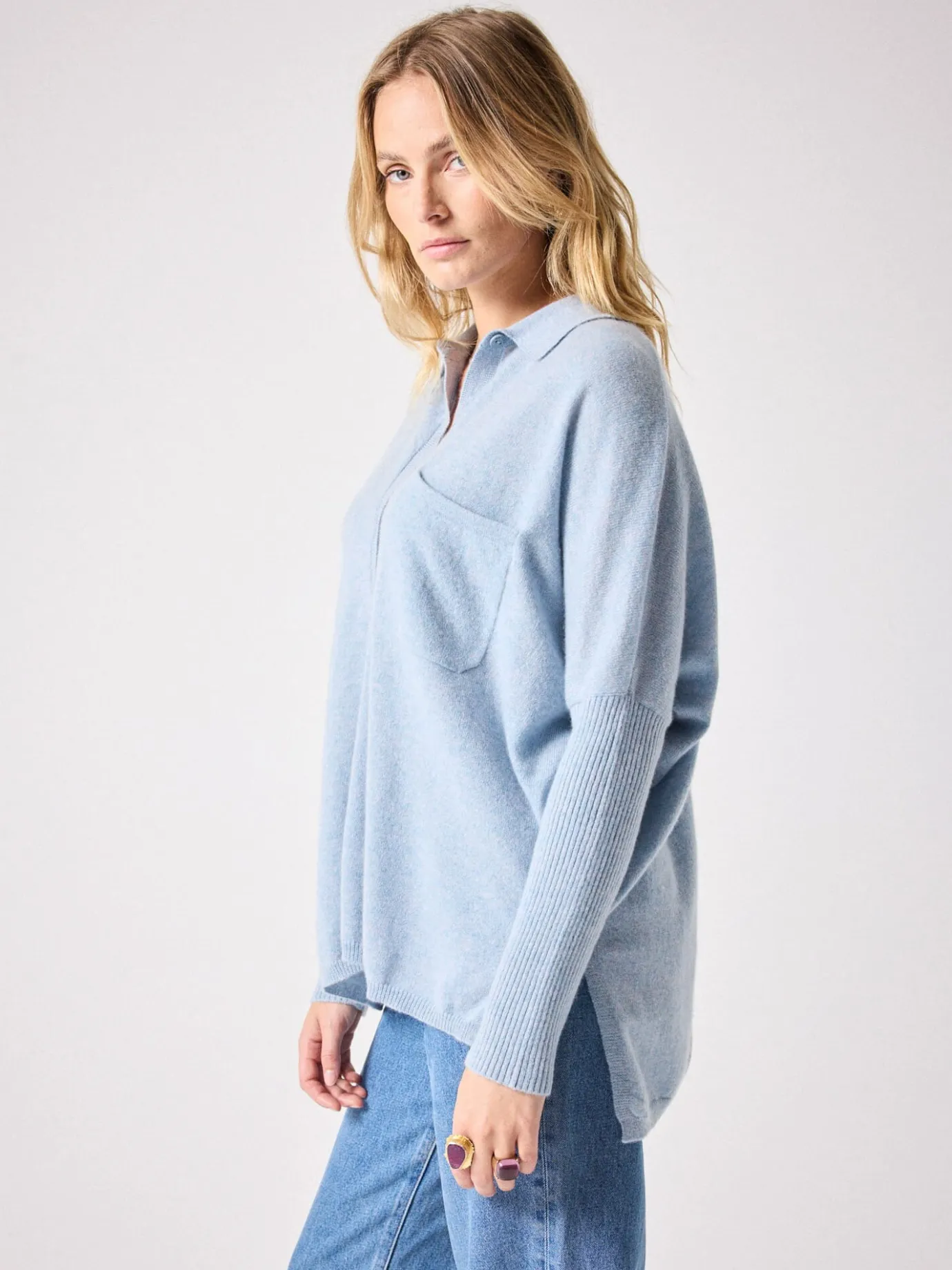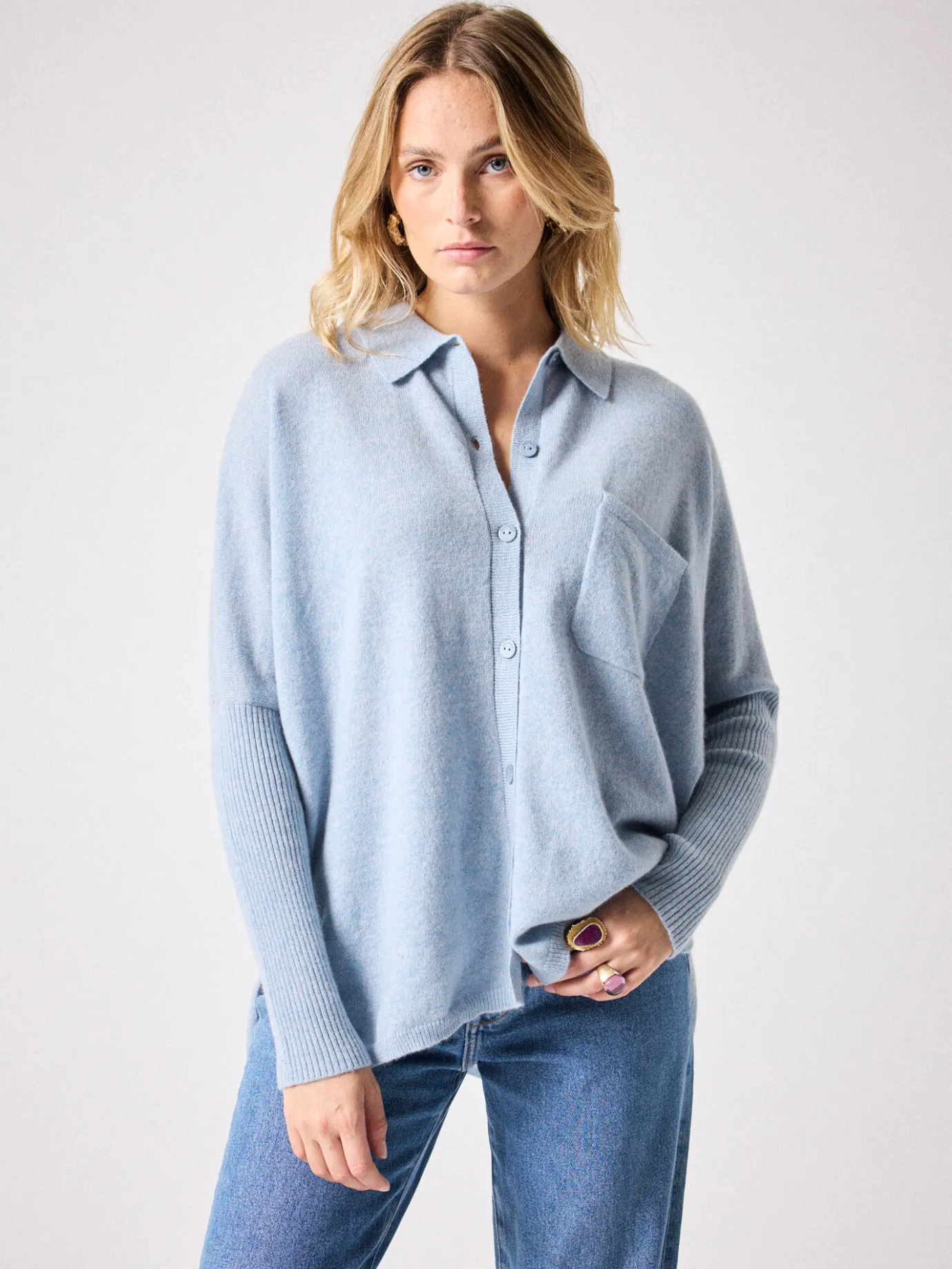 DescriptionPull poncho pour femme, col chemise, manches longues- Bords côtes- Manches côtelées- Poche plaquée- Bouto…