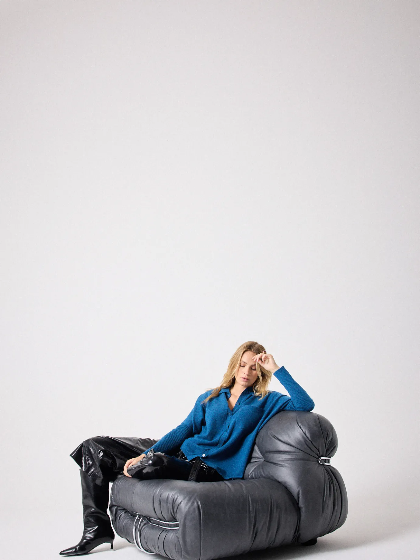 Il se décline en plusieurs modèles : le FAUSTINE sa version col V, le ANDREA avec son col chemise, le ALICIA sa version gilet, le col roulé du MARGARETH, ALIX le pull capuche ou encore la BELLA pour la robe.