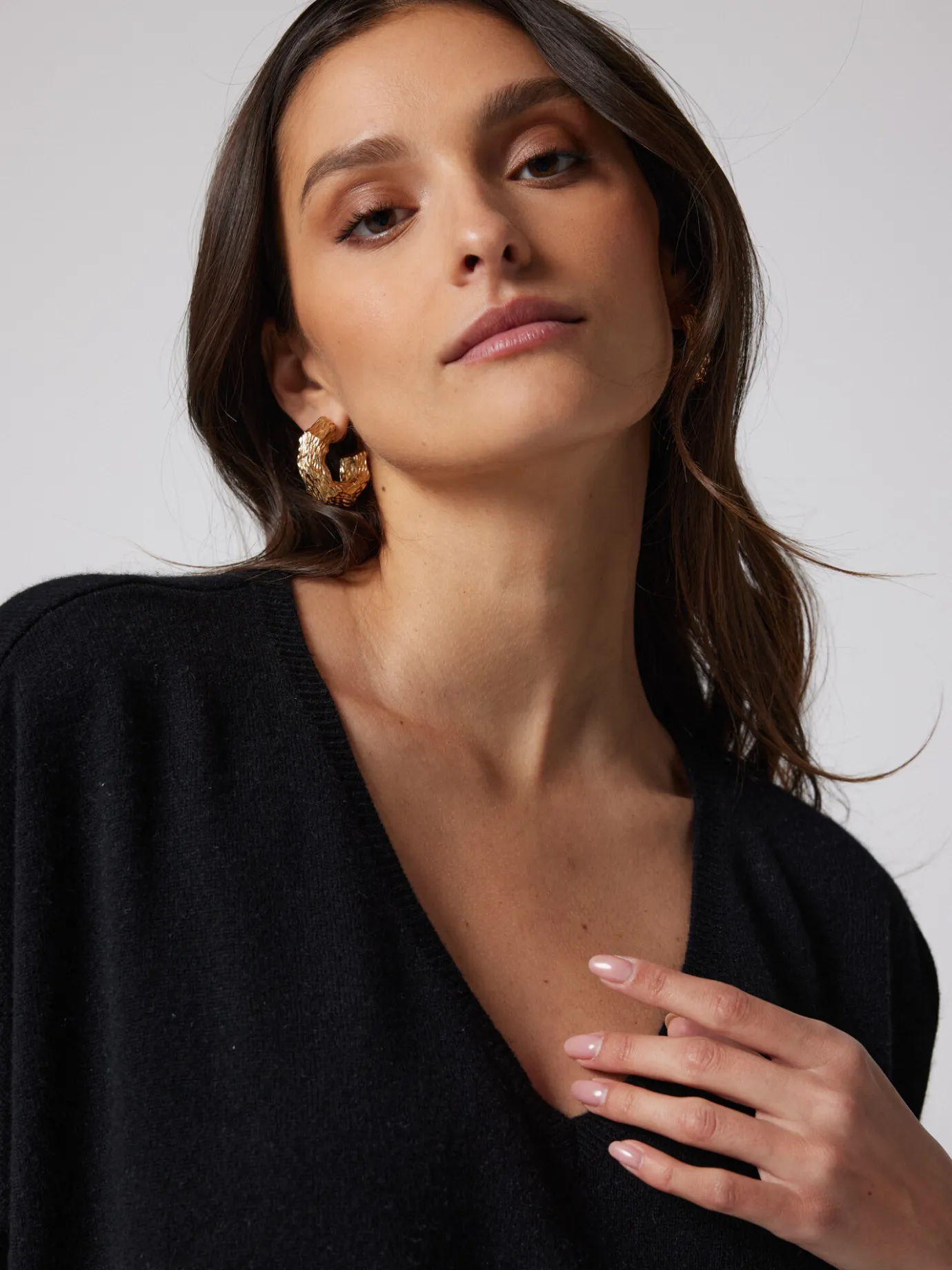 DescriptionPull poncho pour femme, col V, manches courtes- Fentes sur les côtés- Coupe ample- Pull 100% cachemire, 2 f…