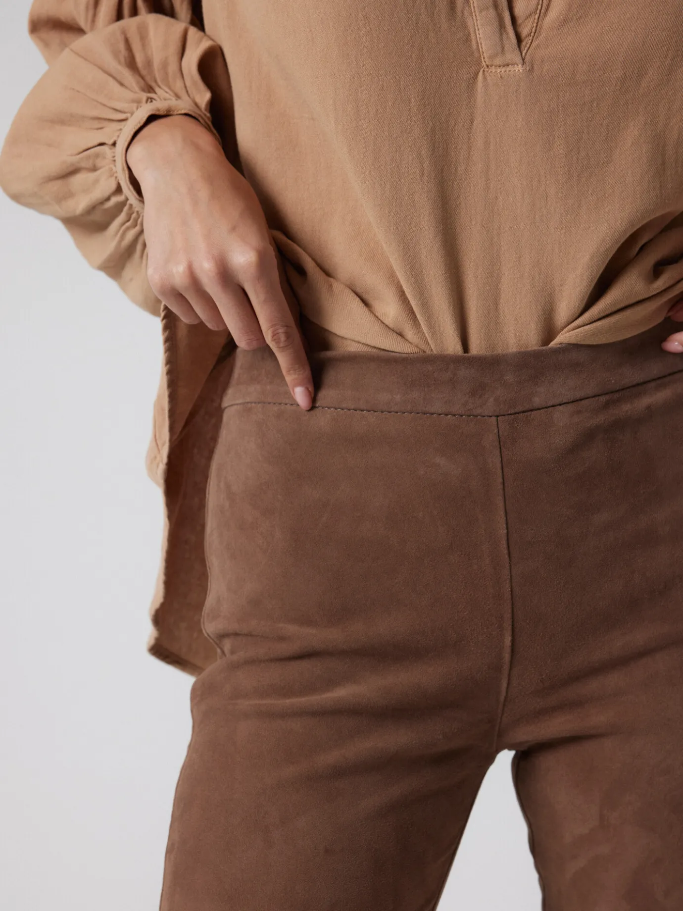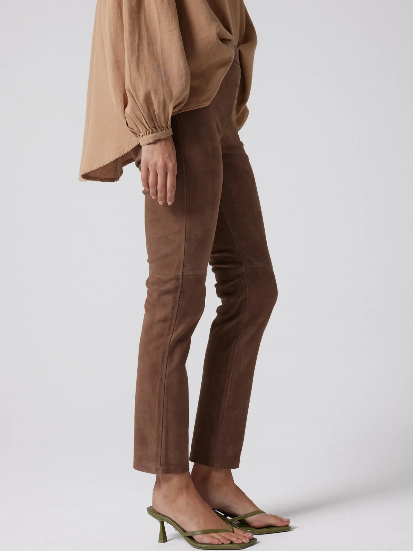 DescriptionPantalon droit en cuir pour femme- Fermeture éclair sur le côté- Coupe droite- Pantalon 100% cuir suèdeMa…