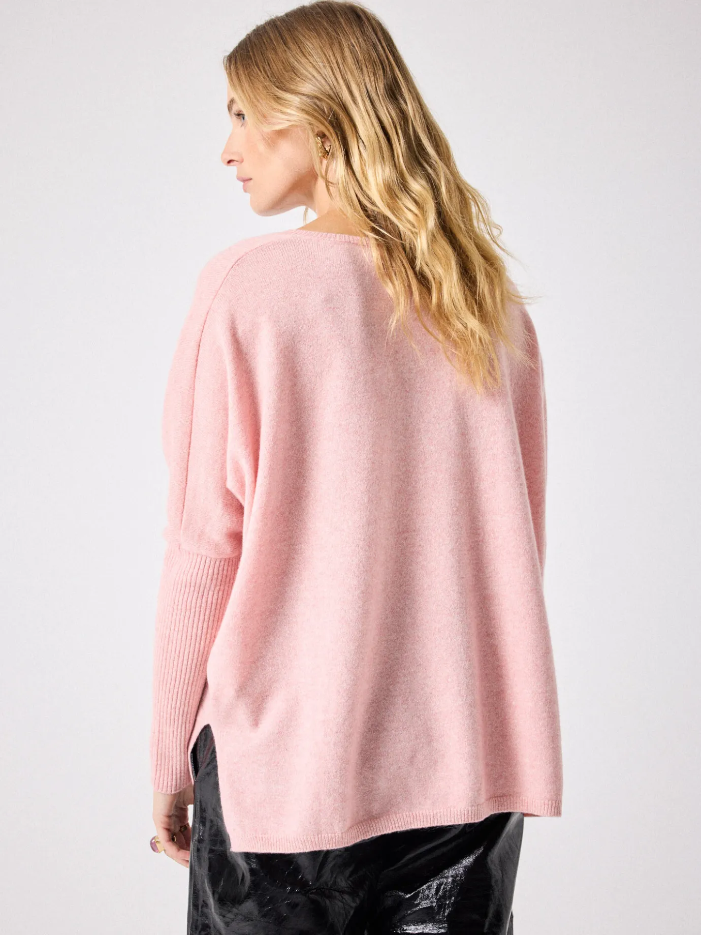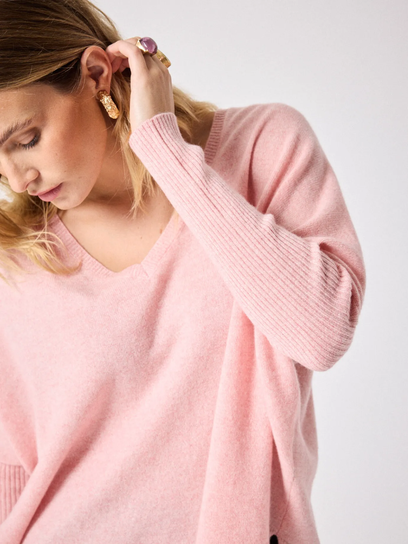 DescriptionPull poncho pour femme, col V, manches longues- Finitions bords-côtes- Fentes latérales- Coupe poncho, over…