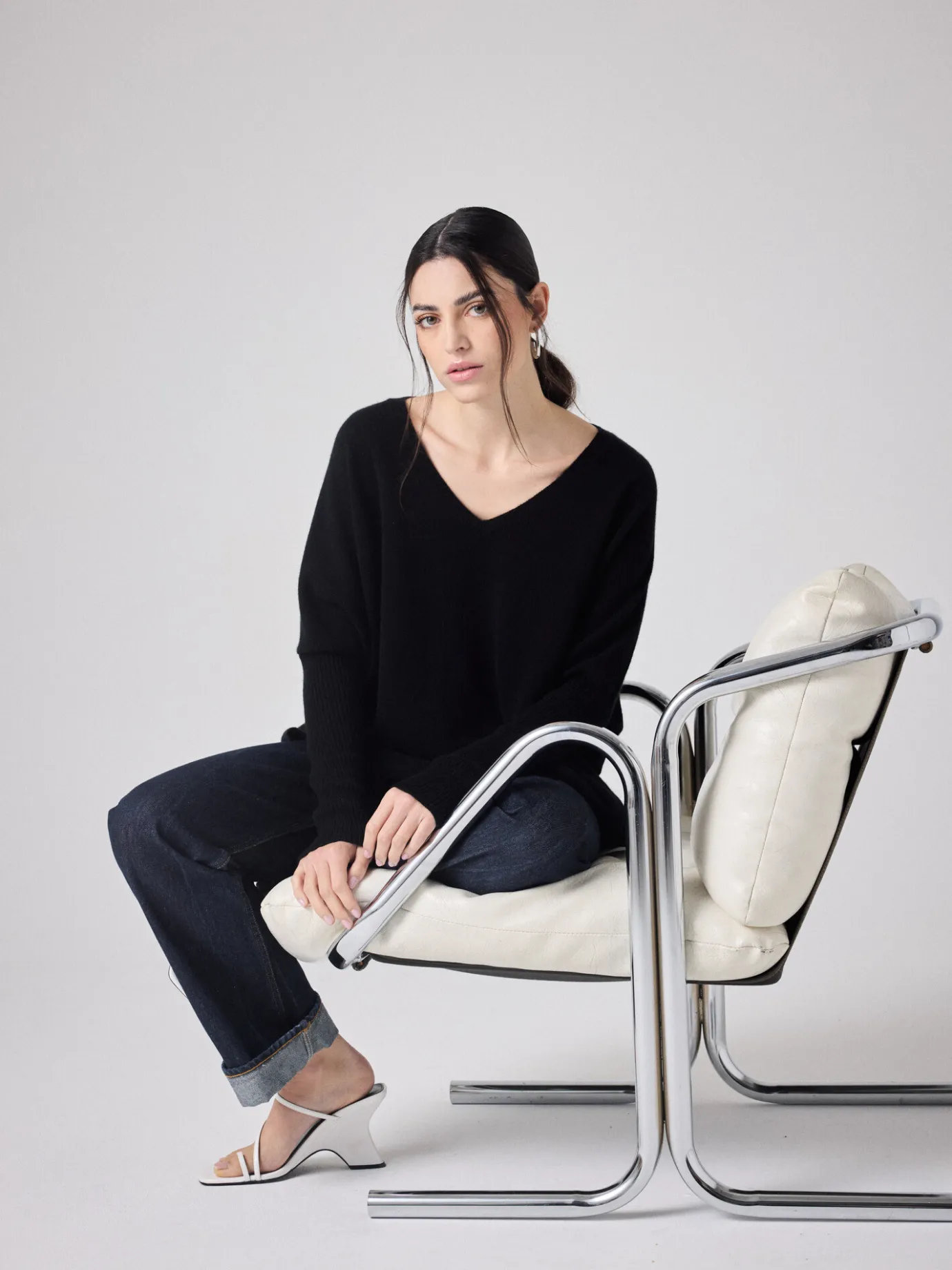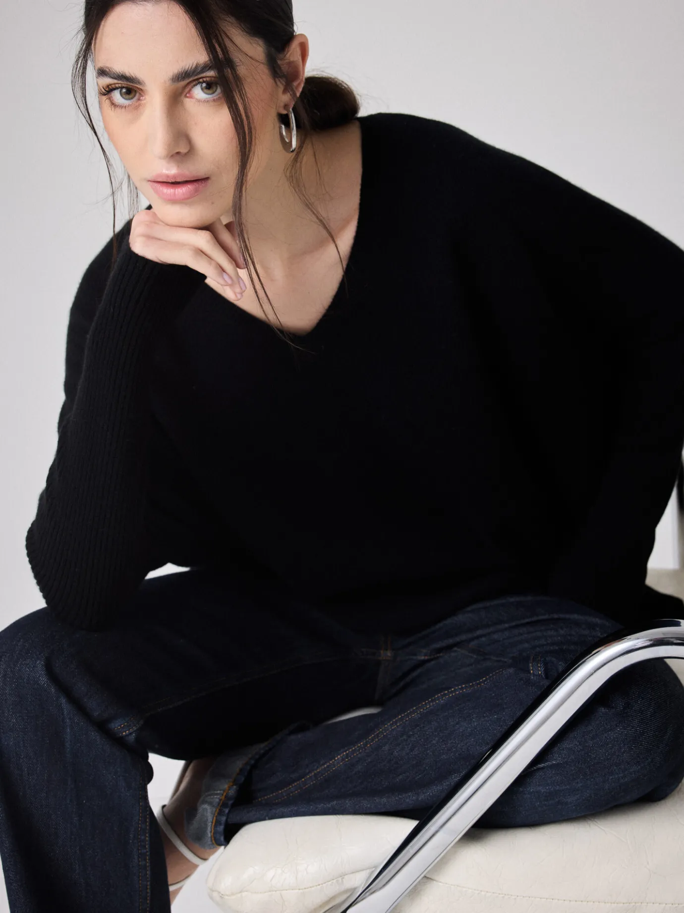 DescriptionPull poncho pour femme, col V, manches longues- Fentes latérales- Finitions bords-côtes- Coupe poncho, over…